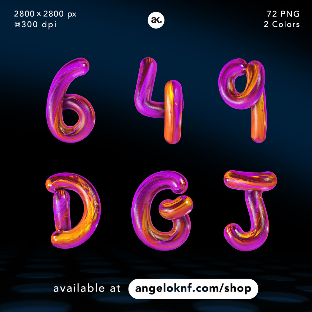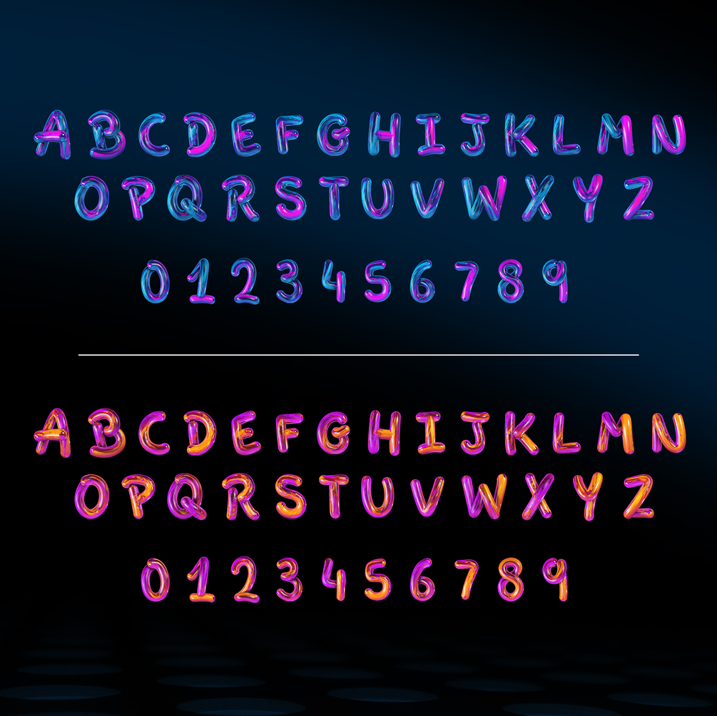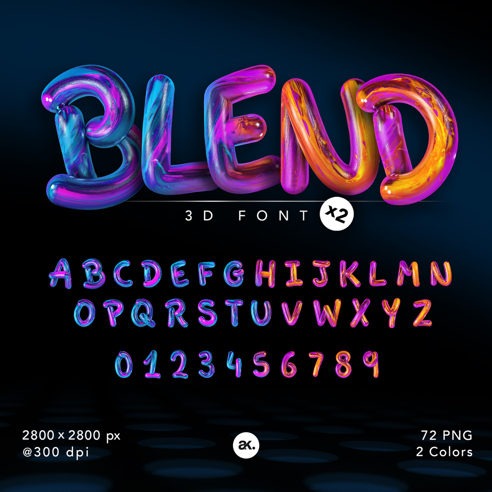 Blend is a 3D font designed in real 3D software using blended materials to produce high contrast and vibrant colors.